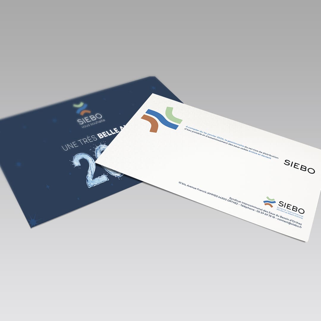 Le Syndicat Intercommunal des Eaux du Bassin d’Orthez renouvelle sa confiance à l’agence Makhila Com. Après le logo et les supports d’édition, nous avons accompagné le syndicat dans la création de sa carte de vœux recto-verso.