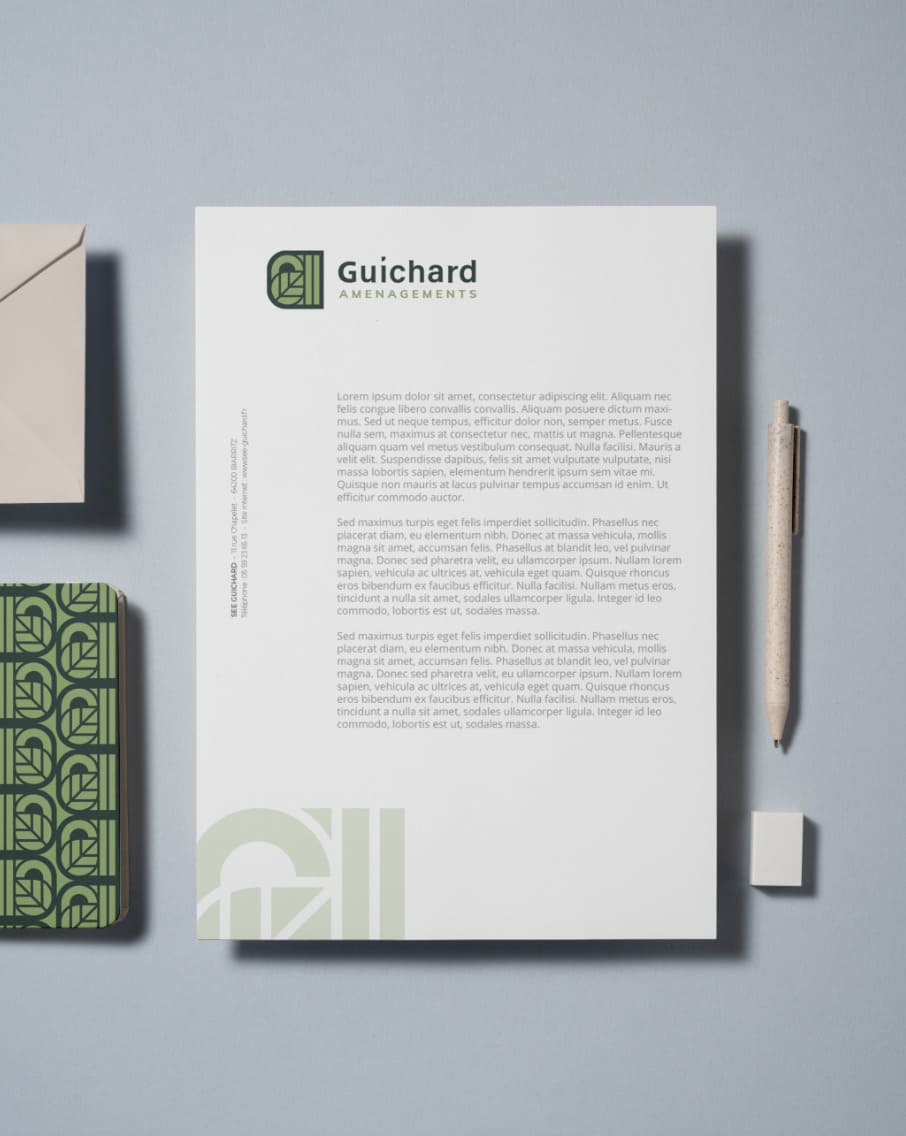 Nous sommes fiers de vous présenter la nouvelle identité visuelle de Guichard Aménagements, spécialiste en aménagements paysagers pour les particuliers, les professionnels et les institutions.